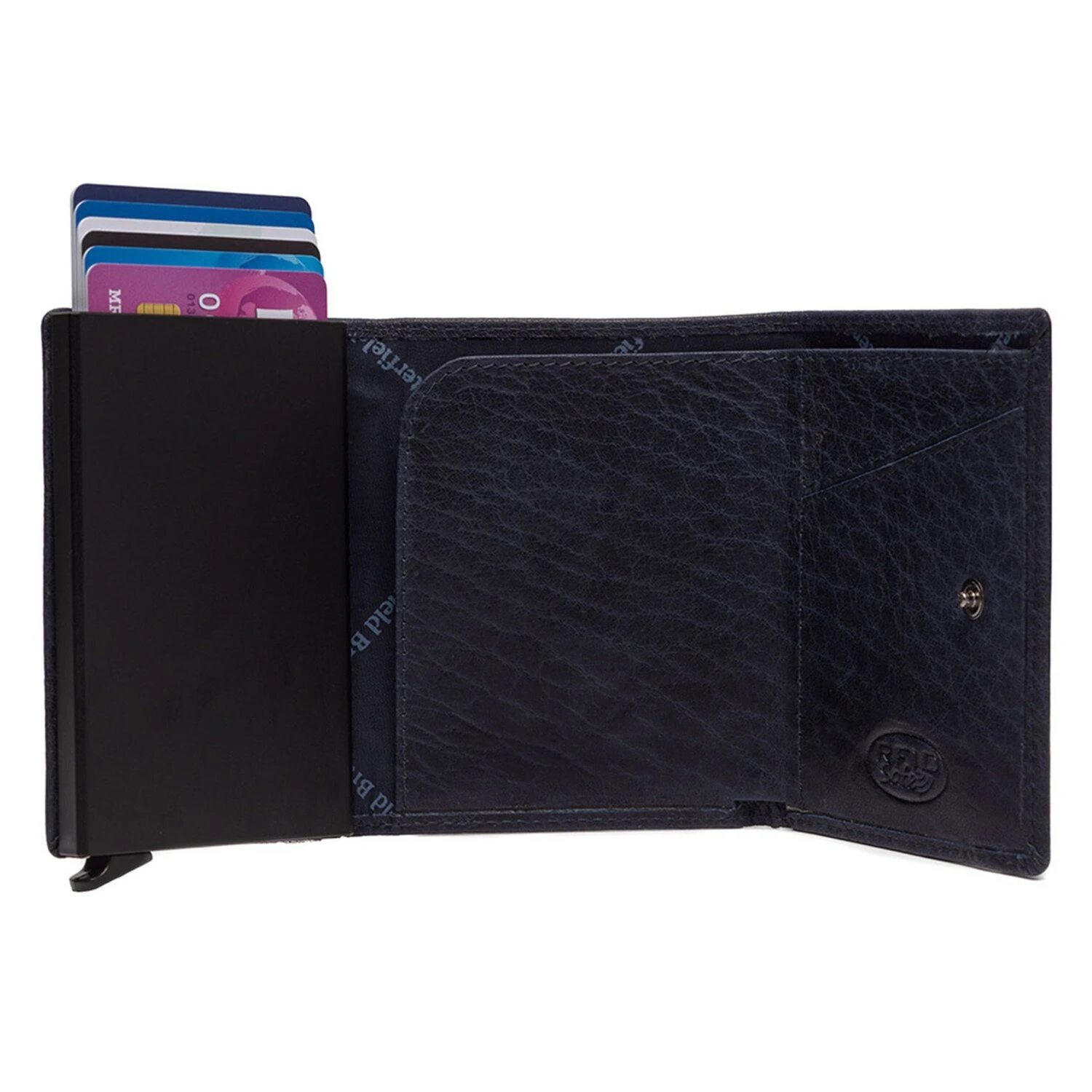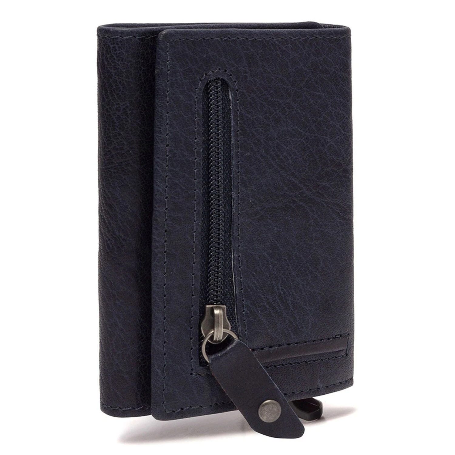 Kompaktes, elegantes Design, höchste Qualität und Sicherheit vereinen sich in diesem Kreditkartenetui von The Chesterfield Brand. In dem stabilen Aluminium Case finden bis zu 6 Karten Platz, die auf Knopfdruck in geordneter Reihenfolge herausgleiten. Zudem ist das Etui mit RFID-Schutz gegen Datendiebstahl ausgestattet. Die edle Hülle aus hochwertigem Leder sorgt für individuelle Eleganz und verfügt über weitere Fächer für Karten sowie ein Geldscheinfach und ein Reißverschlussfach auf der Rückseite für Münzen, Einkaufswagenchip oder andere kleine Wertsachen.