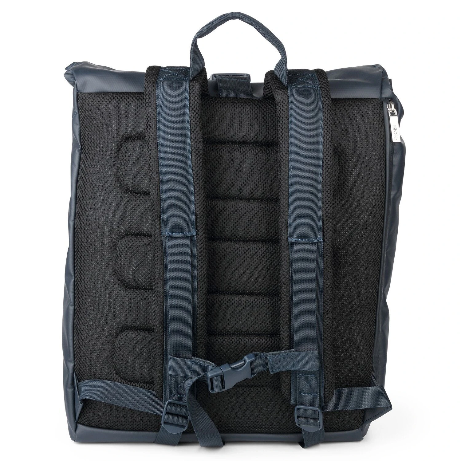 Stylischer Rucksack von Bree in minimalistischem, cleanem Design. Der große Rucksack aus robuster Plane bietet ein großes Hauptfach mit Reißverschlusstasche für A4 Unterlagen, zwei Steckfächern und eingenähtem Schlüsselband. Geschlossen wird das Hauptfach mit einem praktischen Überschlag und Reißverschluss. An der Rückenseite befindet sich ein Laptopfach mit Reißverschluss.