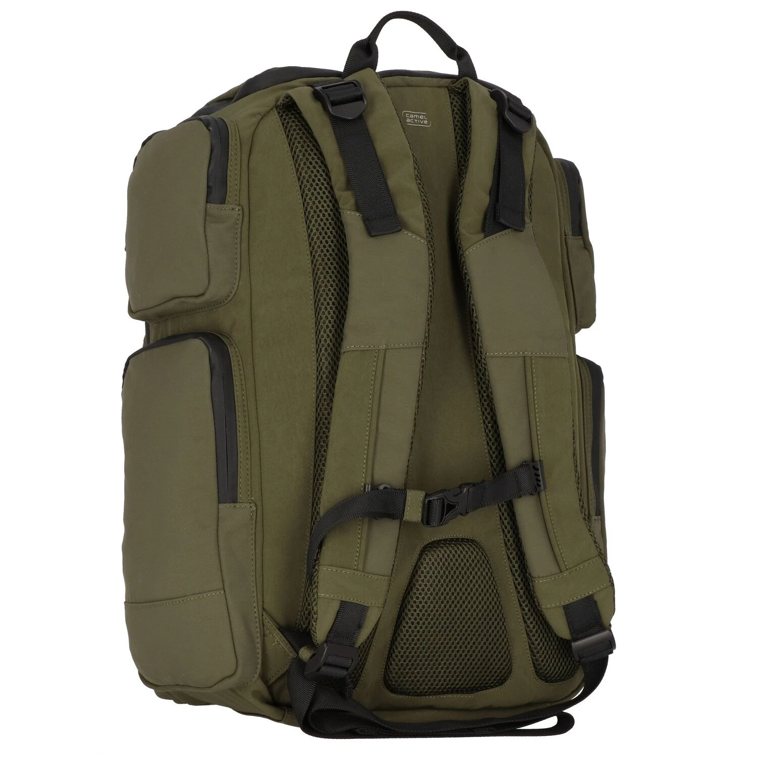 Der Rucksack aus Nylon von camel active bietet ein großes Hauptfach mit Laptop- Handy- Steck- und Reißverschlussfach. Zudem hat er viele geräumige Reißverschlussfächer an der Außenseite. Die Rückenpolsterung und die geschützten Reißverschlüsse machen ihn zum perfekten Begleiter.