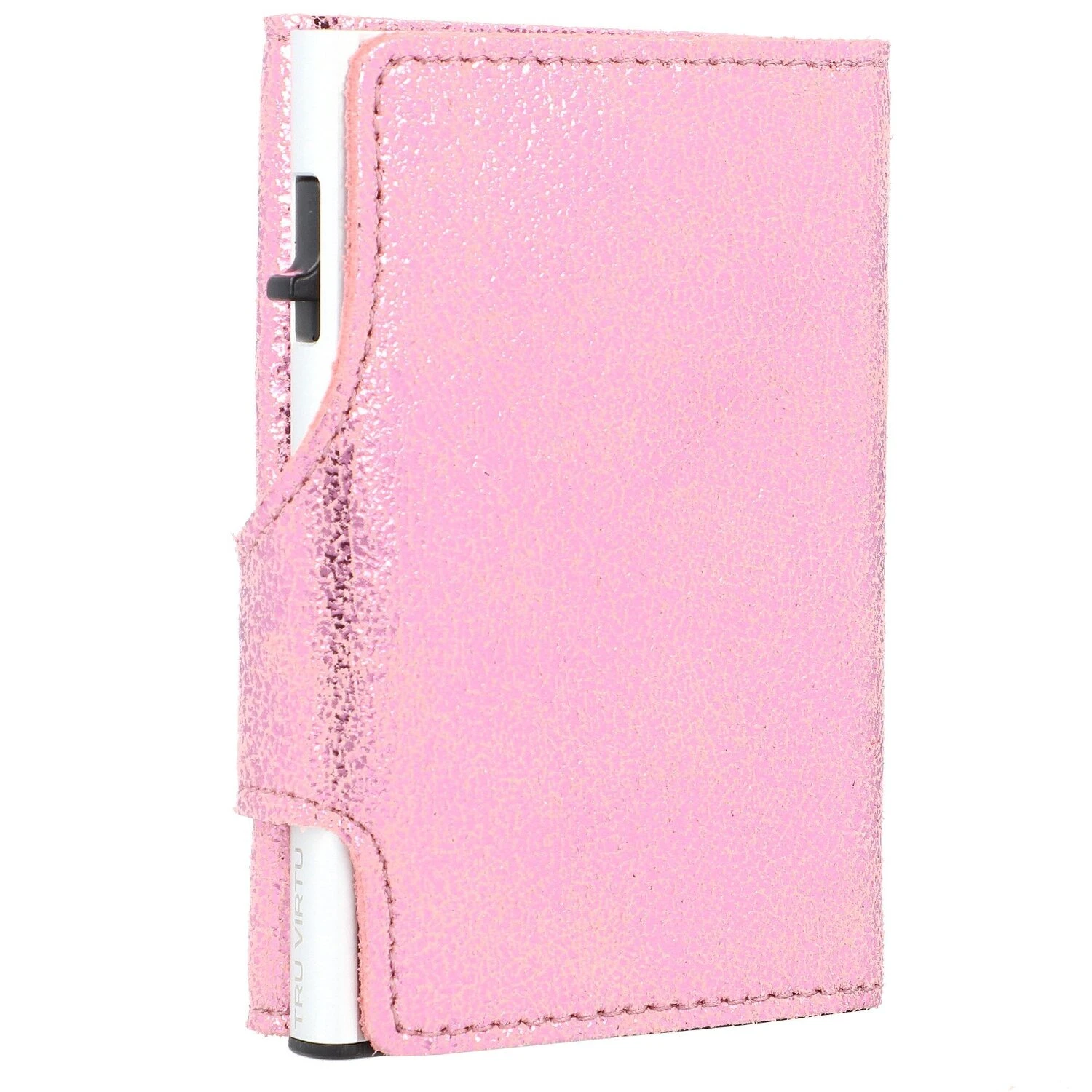 Elegantes Kreditkartenetui von Tru Virtu mit innovativer, patentierter „Click & Slide“ -Technologie: Auf Knopfdruck gleiten bis zu fünf Karten in geordneter Reihenfolge aus dem Aluminium-Case heraus. Mit Hülle aus feinstem Leder und drei zusätzlichen Fächern im Innern für weitere Karten und Geldscheine. Zudem hat es RFID-Schutz gegen Datendiebstahl.