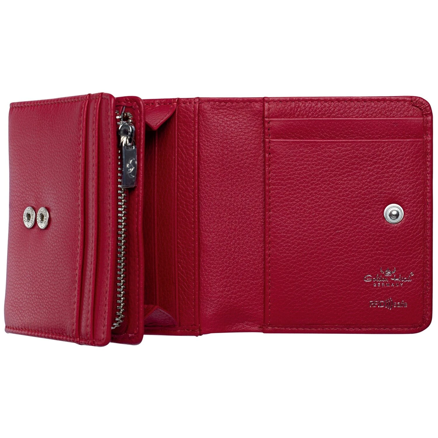 Angesagte Golden Head Geldbörse aus handgefärbtem Vollrindleder. Die Börse bietet viel Stauraum für Ihre Geldscheine, Münzen, Coupons oder Einkaufszettel und ist mit RFID-Blocker gegen Datendiebstahl ausgestattet.