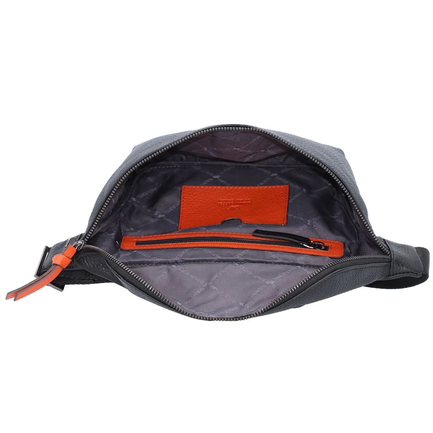 Edle Gürteltasche aus natürlich genarbten Leder mit verstellbarem Hüftgurt, um die Tasche auch cross-body tragen zu können. Ein großes Hauptfach bietet genügend Platz für alle wichtigen Dinge. Ein modischer Begleiter für viele Gelegenheiten in hochwertiger Verarbeitung. Der braune Zipper am Reißverschluss kann durch einen schwarzen, der in der Tasche zu finden ist, ausgetauscht werden.