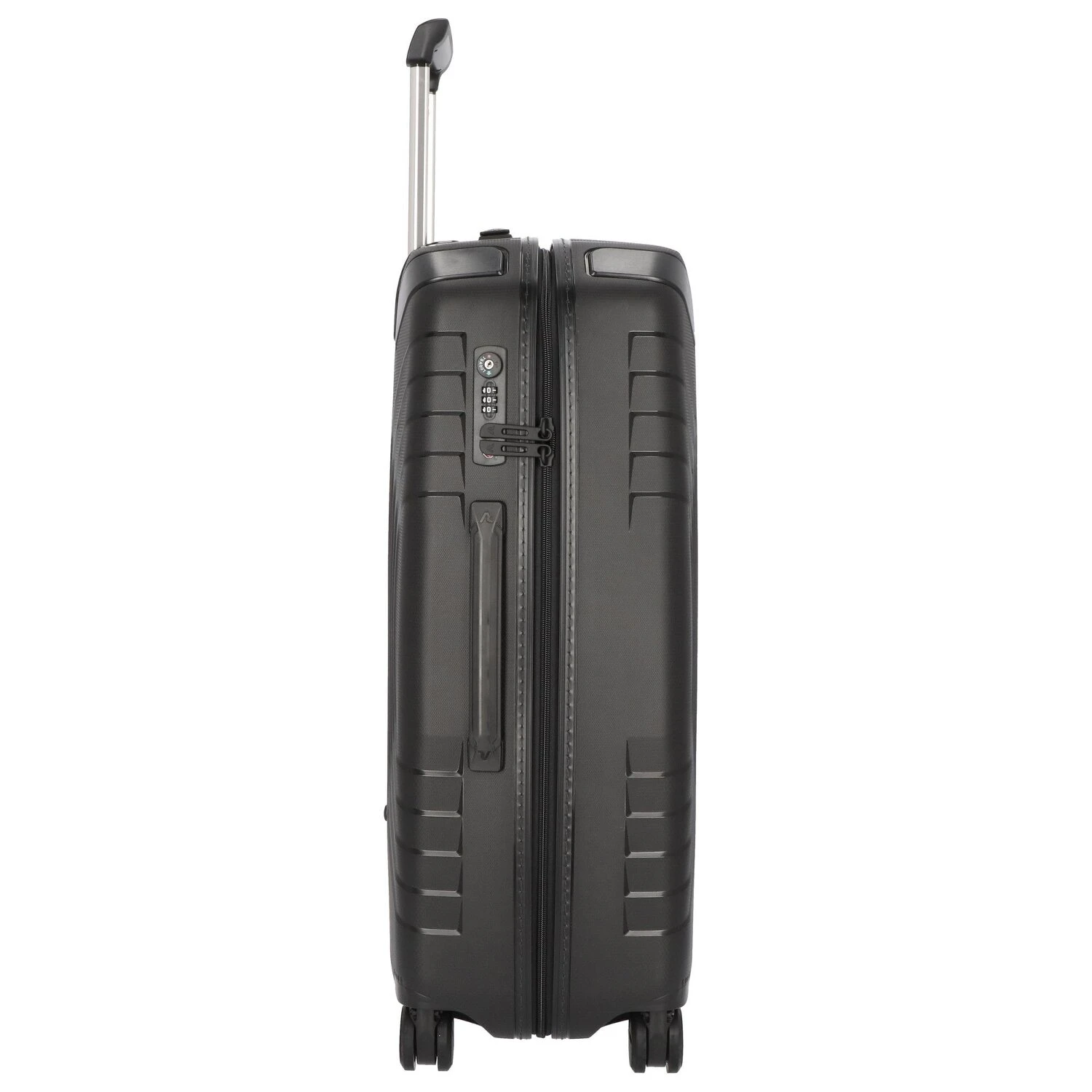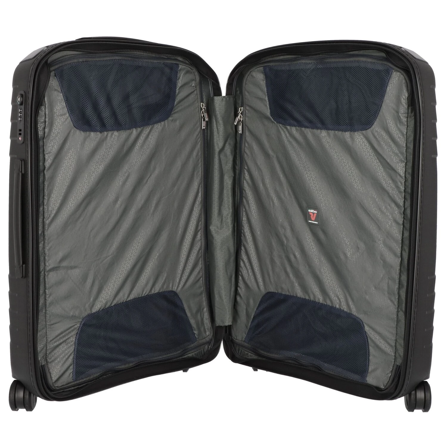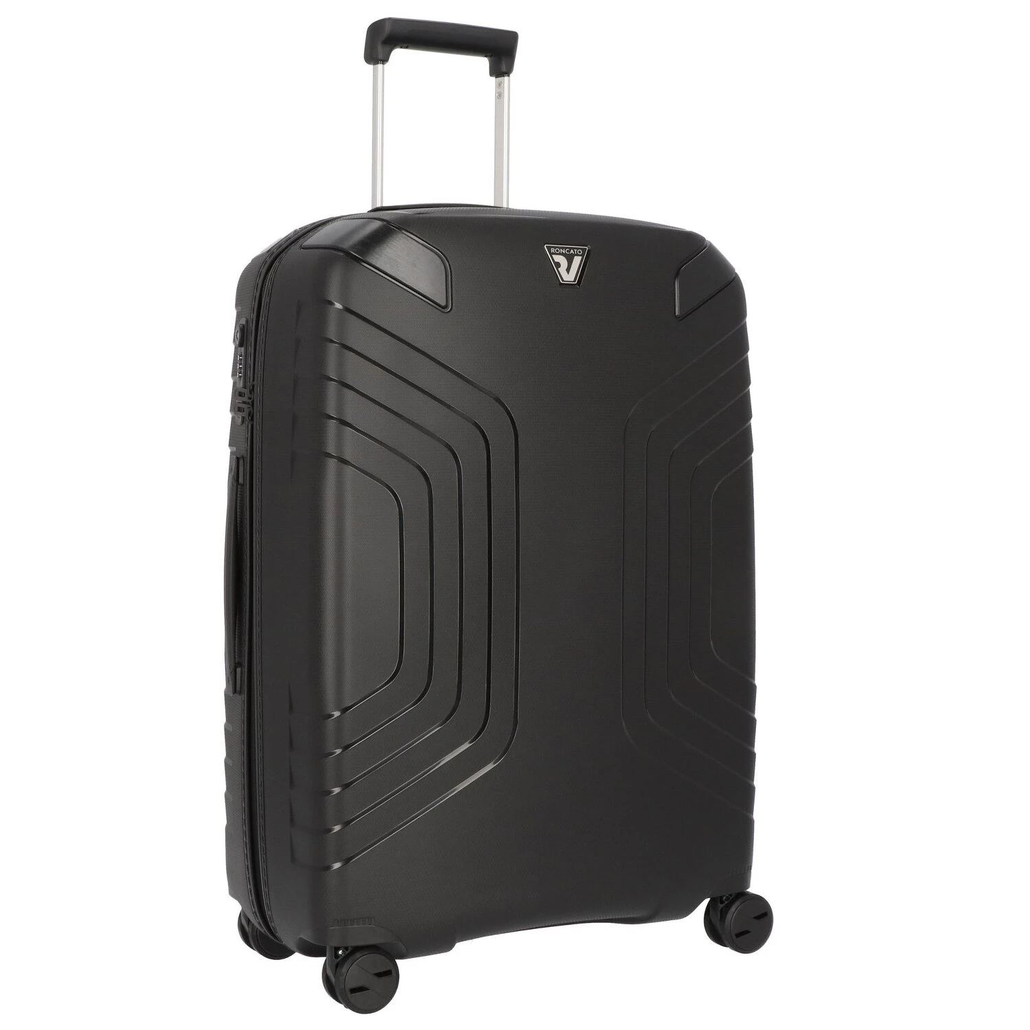Stylischer Trolley von Roncato ist stabil und robust. Das Design des Koffers ist auffallend modern und macht ihn zum idealen Begleiter. Die hochwertige Verarbeitung erstreckt sich auch auf die leicht laufenden Rollen und den Teleskopgriff. Er verfügt über eine Erweiterungsfunktion, mit der die Breite um bis zu 5 cm erweitert und das Volumen dadurch um etwa 17 Liter vergrößert werden kann.