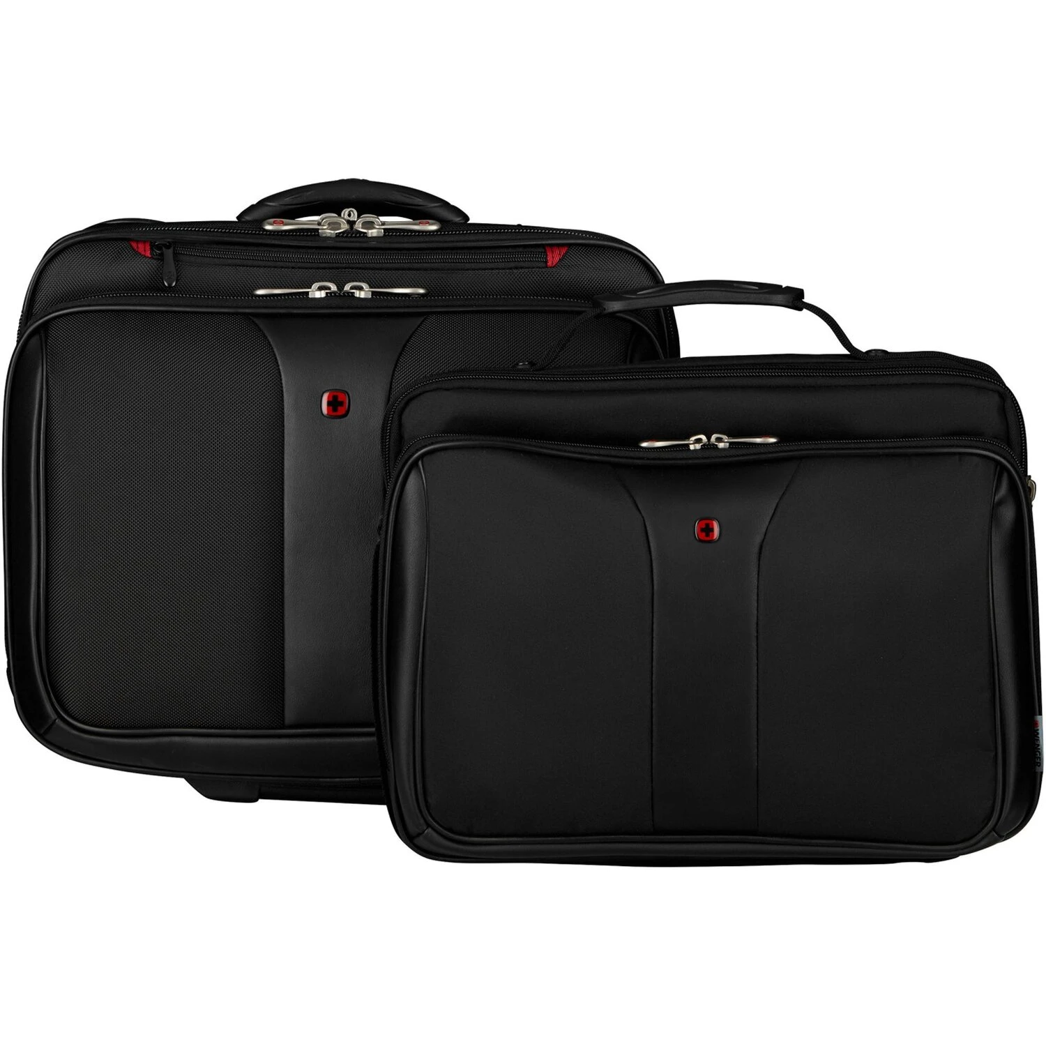 Funktionaler 2-Rollen Businesstrolley von Wenger aus strapazierfähigem Polyester in geradlinigem, modernem Design. Die geräumige Tasche verfügt über ein großes Hauptfach, ein Laptop- und ein Tabletfach, ein Kleiderfach mit Spanngurt sowie weitere Nebenfächer für Wertsachen, Handy und mehr. Zusätzlich ist eine kleine Laptoptasche enthalten, welche Platz für ein 15,6″ Laptop und Zubehör bietet.