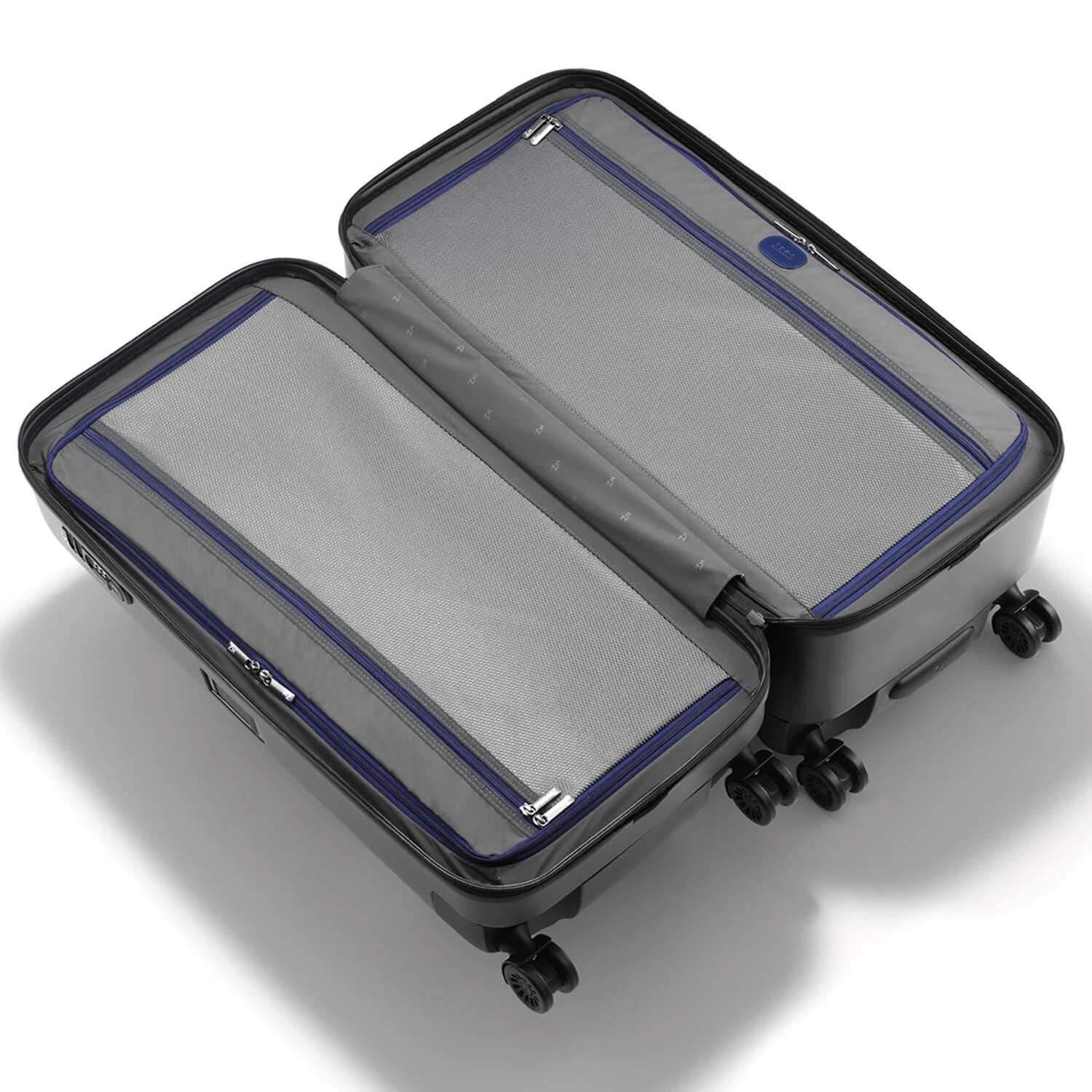 Stilvoller Look, beeindruckende Ausstattung sowie hochwertige Verarbeitung machen diesen Trolley von Zero Halliburton zur ersten Wahl für Reisende mit Stil. Mit vier gummierten Rollen und durchdachtem Innenleben für viel Stauraum. Das TSA-Zahlenschloss bietet zusätzliche Sicherheit. Zusätzlich ist auch ein unauffälliger Kleiderbügelclip enthalten, der einige Kleiderbügelgrößen aufnehmen kann.