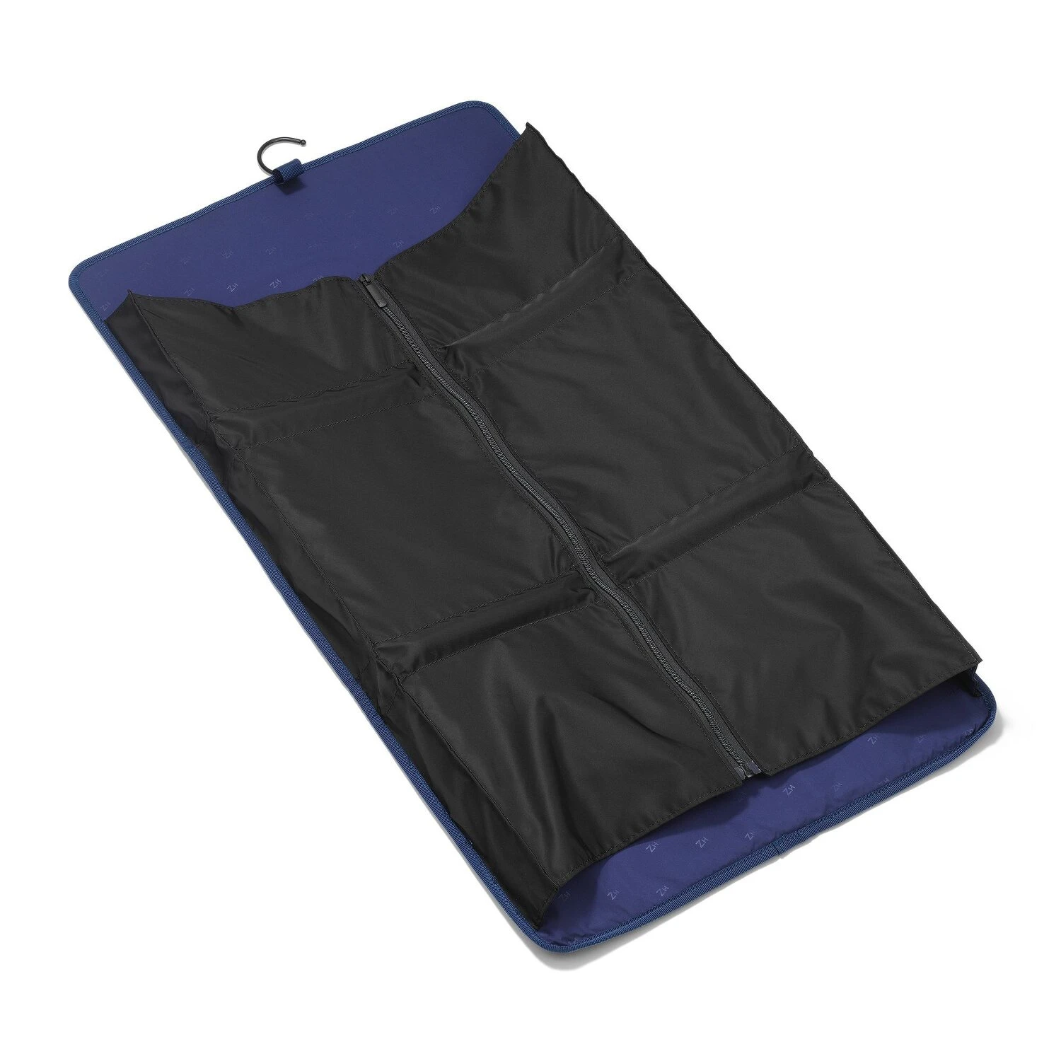 Die dreifach gefaltene Kleiderhülle aus strapazierfähigem Material lässt Ihnen Anzug oder Abendkleid auch auf Reisen sicher und knitterfrei transportieren. Der praktische Kleidersack verfügt über einen Haken zum Aufhängen.